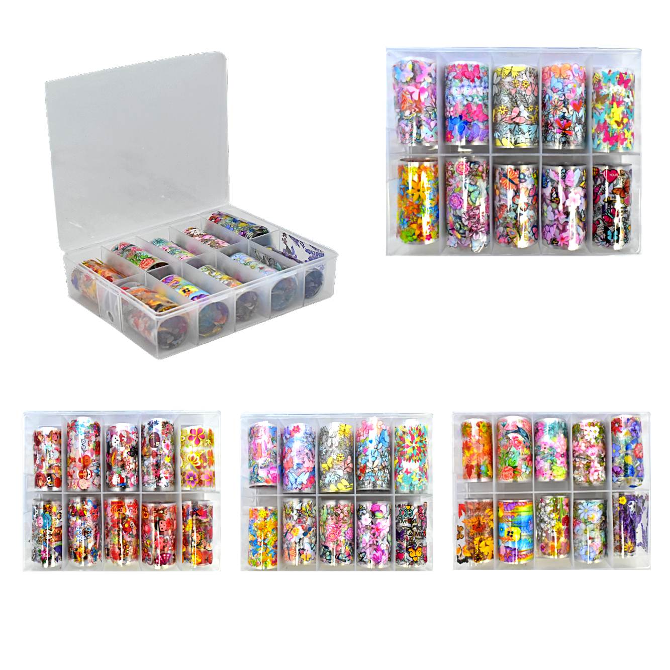 Caja de papel foil de 10 compartimentos en diseño de flores y mariposas
