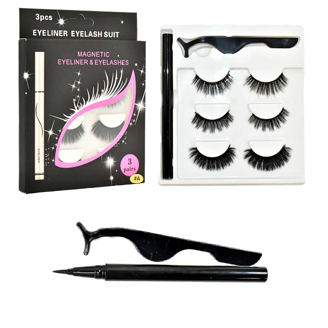 Kit de 3 pares de pestañas y delineador magnético