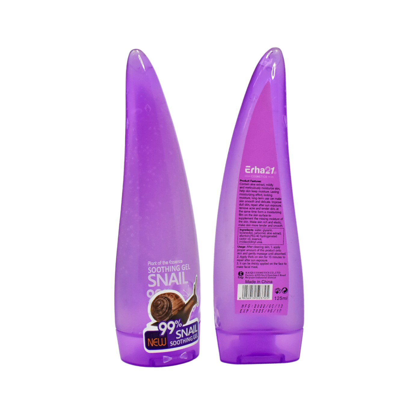 Gel hidratante y suavizante corporal presentación morada de caracol Erha21 125ml