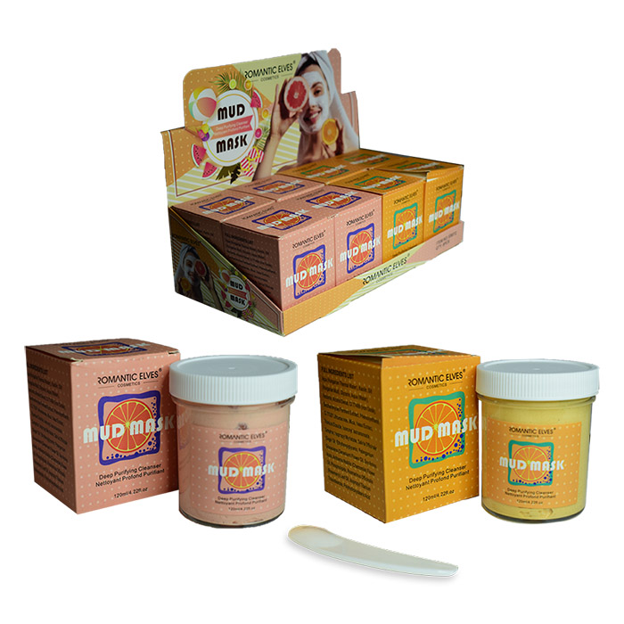 Mascarilla de barro de toronja y naranja de la marca Romantic Elves limpia profundamente la piel, mejora su elasticidad, absorbe instantáneamente la grasa y reduce el brillo facial. Sus propiedades naturales son perfectas para la eliminación de puntos negros, barros, espinillas y la disminución de ojeras.