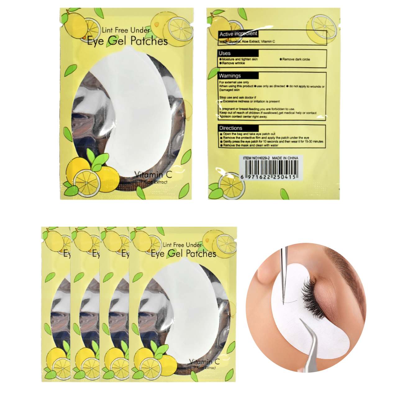 El parche para ojeras contiene aloe vera y vitamina C nos ayuda a hidratar la piel, tensarla y eliminar las arrugas de esta manera podemos eliminar ese circulo obscuro que nos molesta, el producto es solo para uso externo no debe aplicarse sobra la piel dañada o sobre las heridas, dejar de utilizar si causa irritaciones en la piel o enrojecimiento, no utilizar el producto las mujeres que están embrazadas o en lactancia porque esta prohibido según las indicaciones del fabricante mantener fuera del alcance de los niños.