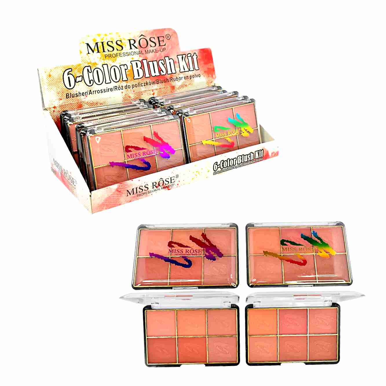 Rubor en polvo compacto de 6 colores Miss Rose 21g