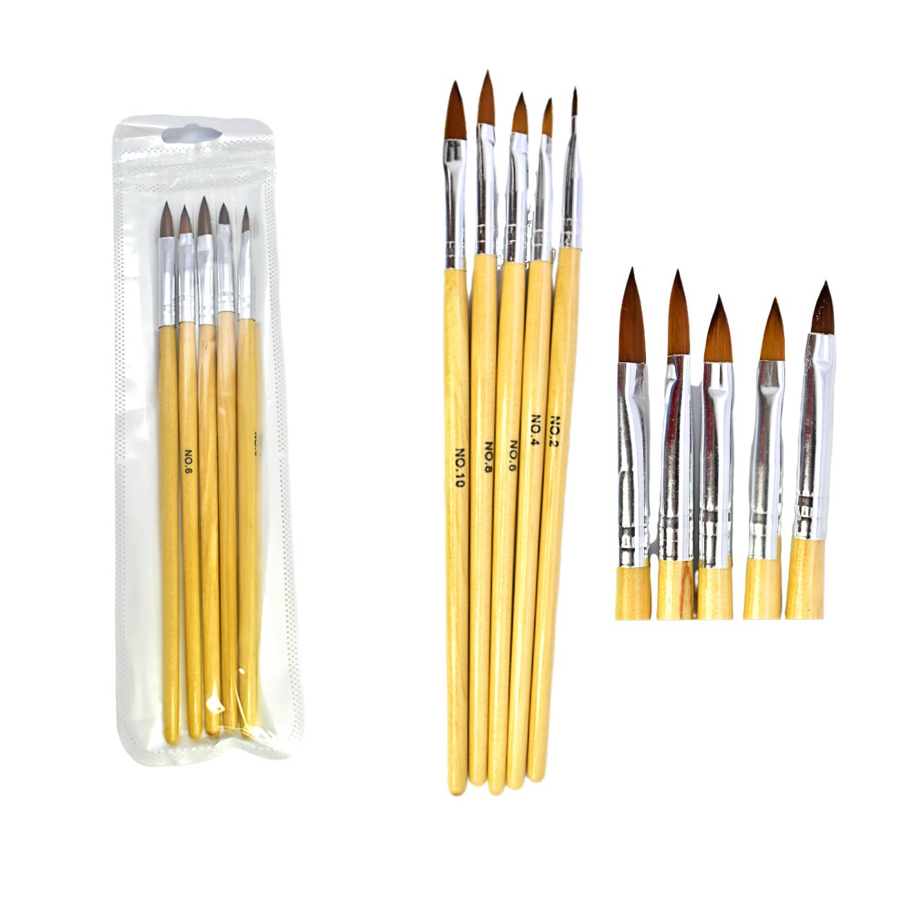 Set de pinceles para Nail Art con mango de madera 5u